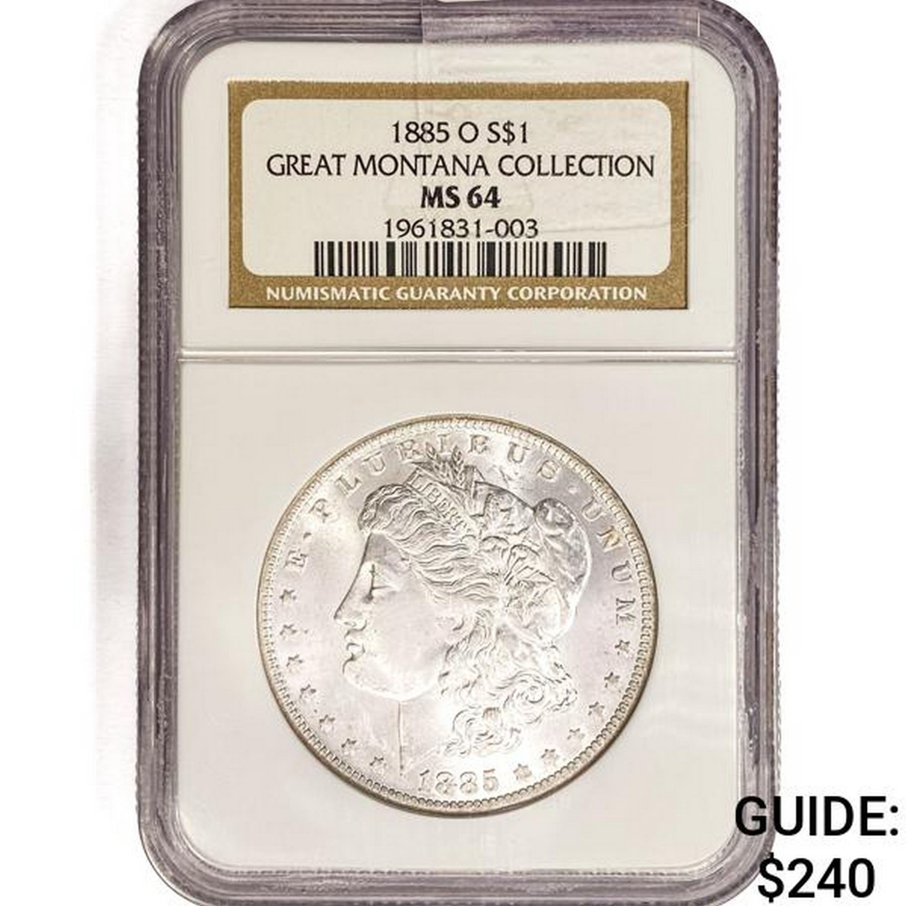 1885-O Morgan Silver Dollar NGC MS64 Great Montana