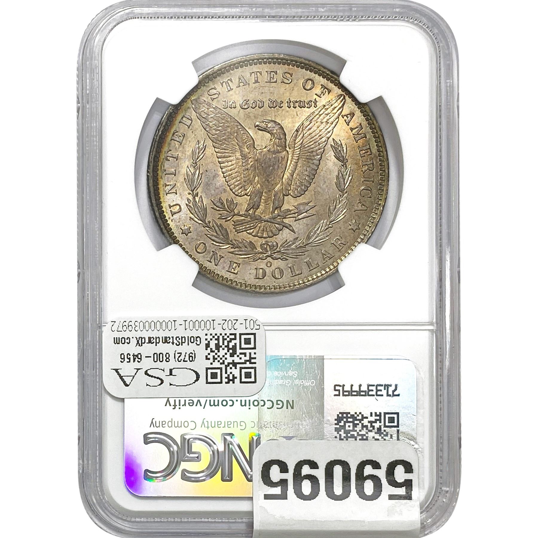 e. Coins sold referencing a third-party grading service are sold “AS IS” without any express or implied warranty, except for a guarantee by GSA that they are genuine. Removal or alteration of the holder, voids all of Bidder’s claims concerning that Product. Certain warranties may be available from the grading services and Bidders are referred to them for further details: Numismatic Guaranty Corporation (NGC), PO Box 4776, Sarasota, FL 34230, www.ngccoin.com/services/writtenguarantee.asp; Professional Coin Grading Services (PCGS), PO Box 9458, Newport Beach, CA 92658, www.pcgs.com/guarantee.html; ANACS, 6555 S. Kenton St., Ste. 303, Englewood, CO 80111; and Independent Coin Grading Co. (ICG), 7901 East Bellview, Ave., Suite 50, Englewood, CO 80111.