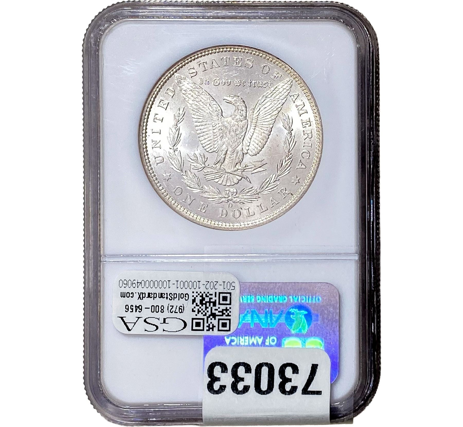 l. All non-certified coins and currency are guaranteed genuine, but are not guaranteed as to grade, since grading is a matter of opinion, an art and not a science, and therefore the description rendered by GSA or any third-party grading service may not agree with the opinion of others (including trained experts), and the same expert may not grade the same item with the same grade at two different times. GSA may, but is not obligated to, express an opinion as to non-certified numismatic items, in GSA’s opinion, or by its employees’ experience and the current interpretation of the American Numismatic Association’s standards as of the date the catalog was prepared. There is no guarantee or warranty expressed or implied that the grading opinions utilized by GSA, if any, will meet the standards of any grading service at any time in the future.