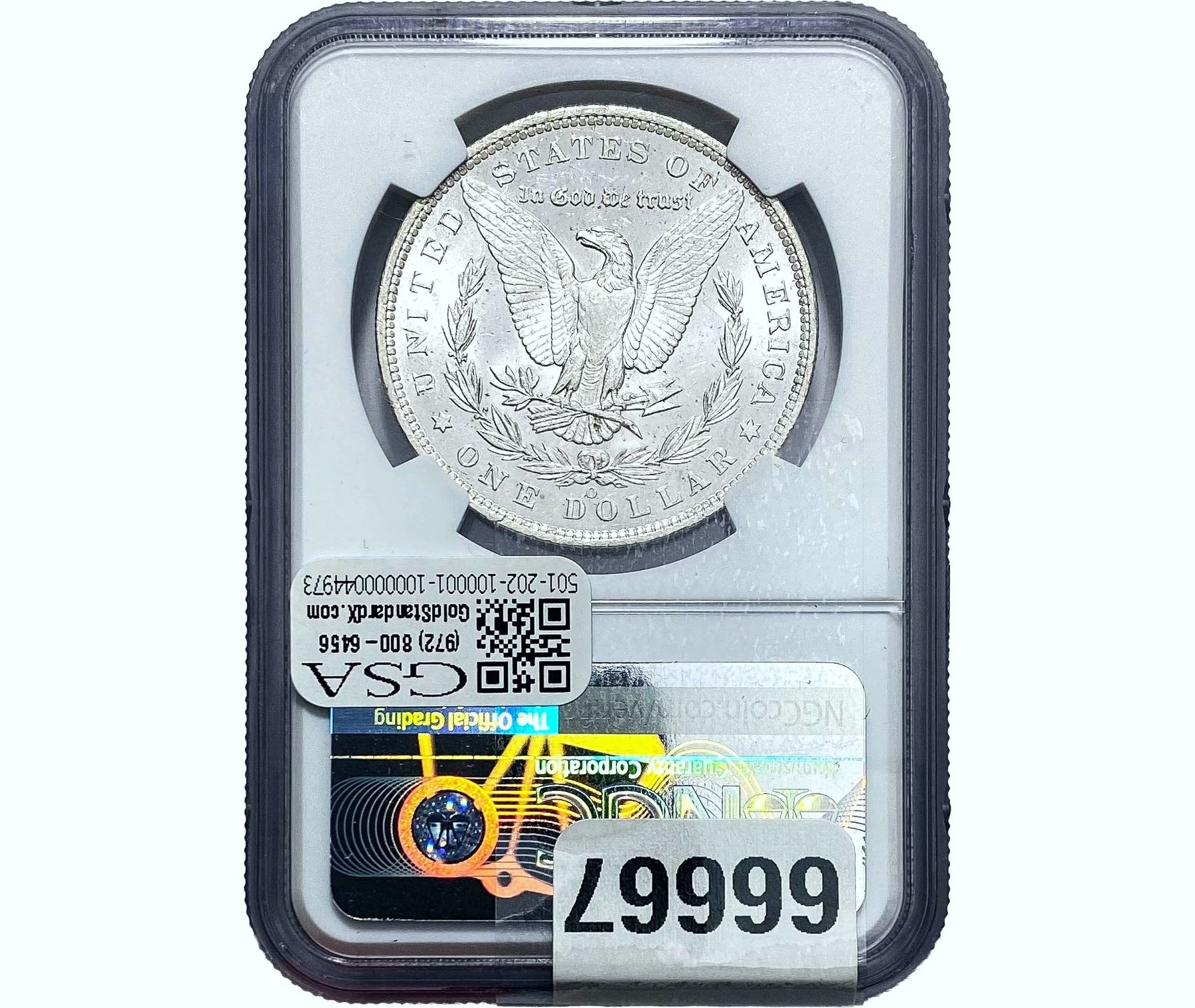 e. Coins sold referencing a third-party grading service are sold “AS IS” without any express or implied warranty, except for a guarantee by GSA that they are genuine. Removal or alteration of the holder, voids all of Bidder’s claims concerning that Product. Certain warranties may be available from the grading services and Bidders are referred to them for further details: Numismatic Guaranty Corporation (NGC), PO Box 4776, Sarasota, FL 34230, www.ngccoin.com/services/writtenguarantee.asp; Professional Coin Grading Services (PCGS), PO Box 9458, Newport Beach, CA 92658, www.pcgs.com/guarantee.html; ANACS, 6555 S. Kenton St., Ste. 303, Englewood, CO 80111; and Independent Coin Grading Co. (ICG), 7901 East Bellview, Ave., Suite 50, Englewood, CO 80111.