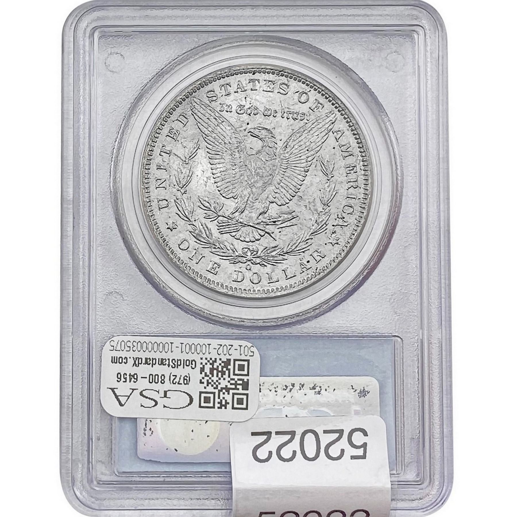 l. All non-certified coins and currency are guaranteed genuine, but are not guaranteed as to grade, since grading is a matter of opinion, an art and not a science, and therefore the description rendered by GSA or any third-party grading service may not agree with the opinion of others (including trained experts), and the same expert may not grade the same item with the same grade at two different times. GSA may, but is not obligated to, express an opinion as to non-certified numismatic items, in GSA’s opinion, or by its employees’ experience and the current interpretation of the American Numismatic Association’s standards as of the date the catalog was prepared. There is no guarantee or warranty expressed or implied that the grading opinions utilized by GSA, if any, will meet the standards of any grading service at any time in the future.