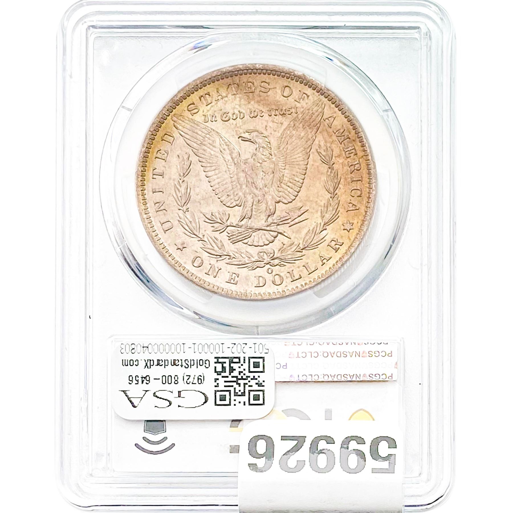 e. Coins sold referencing a third-party grading service are sold “AS IS” without any express or implied warranty, except for a guarantee by GSA that they are genuine. Removal or alteration of the holder, voids all of Bidder’s claims concerning that Product. Certain warranties may be available from the grading services and Bidders are referred to them for further details: Numismatic Guaranty Corporation (NGC), PO Box 4776, Sarasota, FL 34230, www.ngccoin.com/services/writtenguarantee.asp; Professional Coin Grading Services (PCGS), PO Box 9458, Newport Beach, CA 92658, www.pcgs.com/guarantee.html; ANACS, 6555 S. Kenton St., Ste. 303, Englewood, CO 80111; and Independent Coin Grading Co. (ICG), 7901 East Bellview, Ave., Suite 50, Englewood, CO 80111.