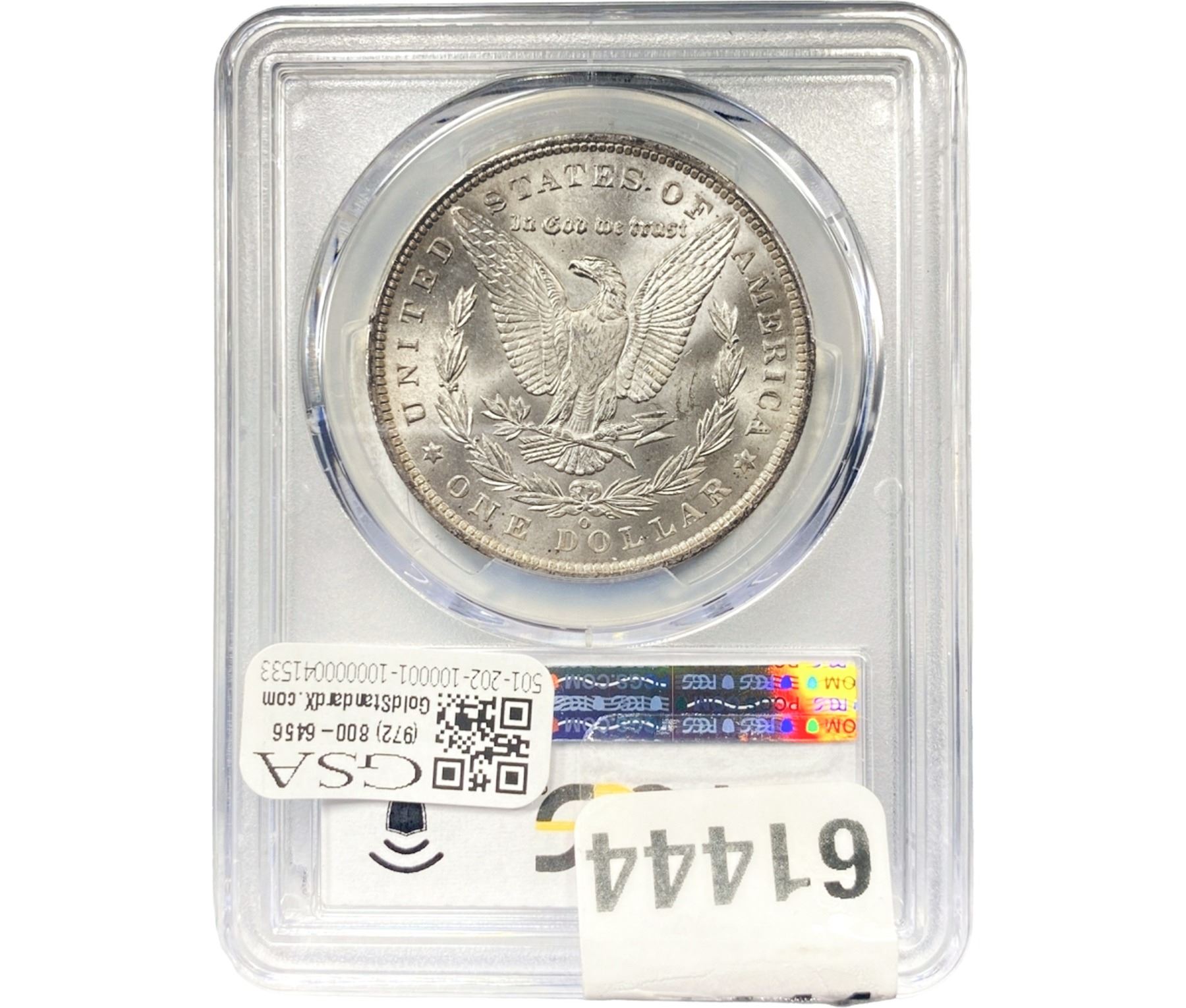 e. Coins sold referencing a third-party grading service are sold “AS IS” without any express or implied warranty, except for a guarantee by GSA that they are genuine. Removal or alteration of the holder, voids all of Bidder’s claims concerning that Product. Certain warranties may be available from the grading services and Bidders are referred to them for further details: Numismatic Guaranty Corporation (NGC), PO Box 4776, Sarasota, FL 34230, www.ngccoin.com/services/writtenguarantee.asp; Professional Coin Grading Services (PCGS), PO Box 9458, Newport Beach, CA 92658, www.pcgs.com/guarantee.html; ANACS, 6555 S. Kenton St., Ste. 303, Englewood, CO 80111; and Independent Coin Grading Co. (ICG), 7901 East Bellview, Ave., Suite 50, Englewood, CO 80111.