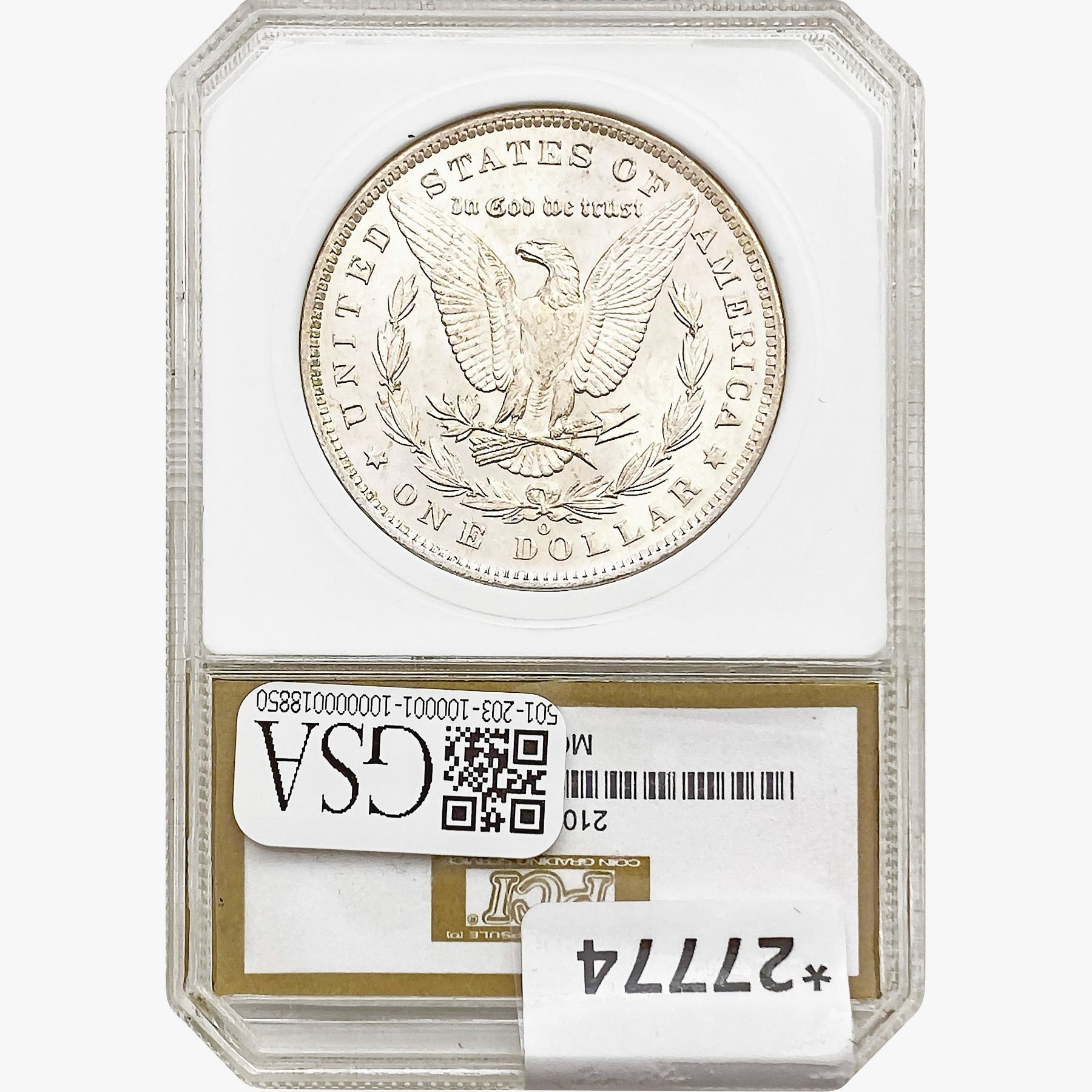 COINS AND CURRENCY LISTED IN GSA’S CATALOG AS GRADED AND ENCAPSULATED BY PCGS, NGC, ANACS, ICG, PCGS CURRENCY, PMG, PCGS BANKNOTE GRADING, CMC OR ANY OTHER THIRD-PARTY GRADING SERVICE ARE LIKEWISE SOLD “AS-IS” EXCEPT AS EXPRESSLY SET FORTH HEREIN. ALL THIRD-PARTY GRADING SERVICE GUARANTEES, INCLUDING AUTHENTICITY, ARE THE SOLE RESPONSIBILITY OF THE THIRD-PARTY GRADING SERVICE AND NOT WARRANTIES OR GUARANTEES OF GSA. BIDDERS SHOULD CONTACT THESE THIRD-PARTY GRADING SERVICES DIRECTLY WITH RESPECT TO ANY CLAIMS OR QUESTIONS THEY MAY HAVE CONCERNING THEIR GUARANTEES AND WARRANTIES. BIDDERS ACKNOWLEDGE AND AGREE THAT AUCTIONEER IS NOT BOUND BY OR LIABLE FOR ANY OPINION OR CERTIFICATION BY ANY THIRD-PARTY GRADING SERVICE. REMOVAL OF A PRODUCT FROM ITS PROTECTIVE CASING OR HOLDER OR ALTERATION OF ANY COIN HOLDER WAIVES ALL RIGHTS CONCERNING THE PRODUCT CONTAINED THEREIN.