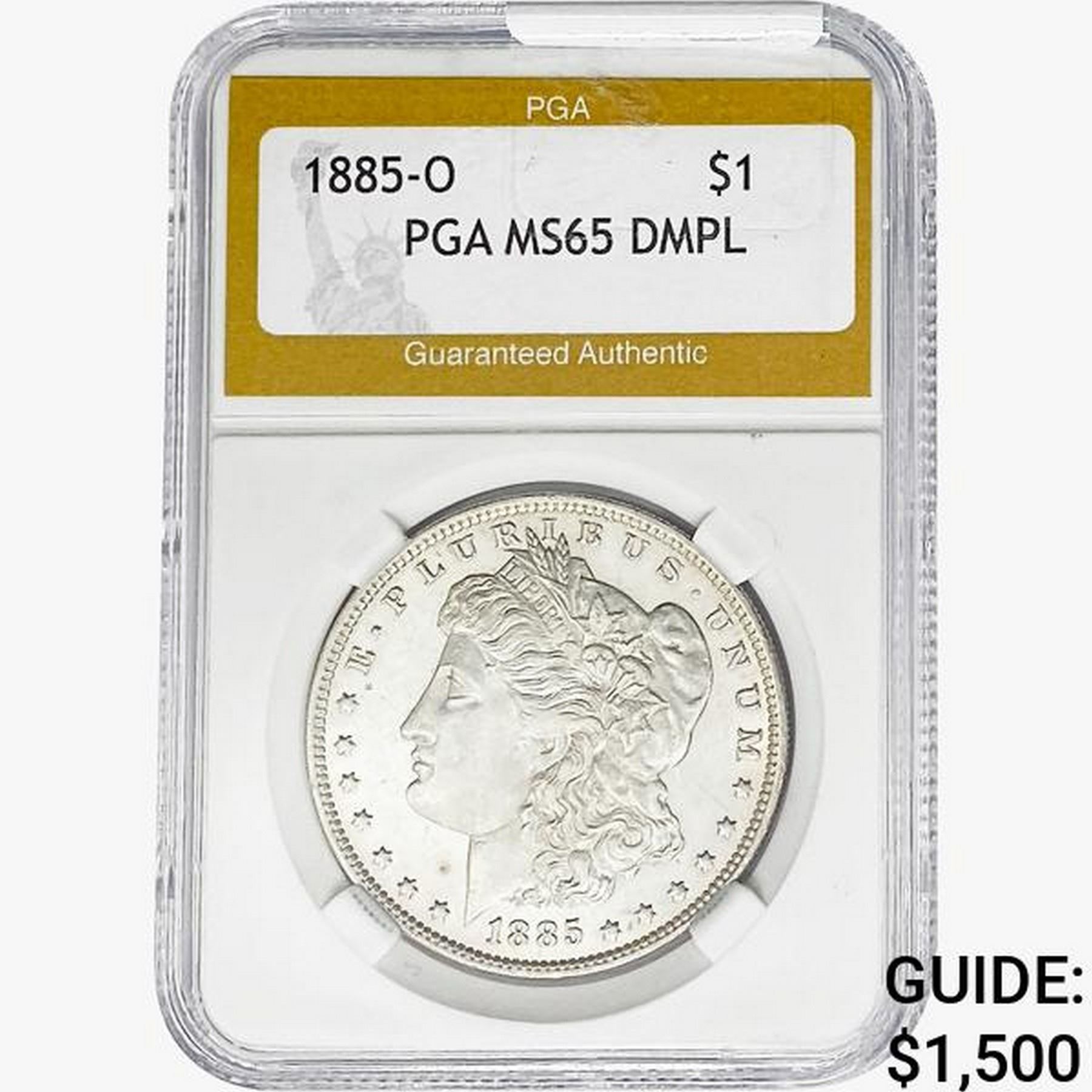 1885-O Morgan Silver Dollar PGA MS65 DMPL
