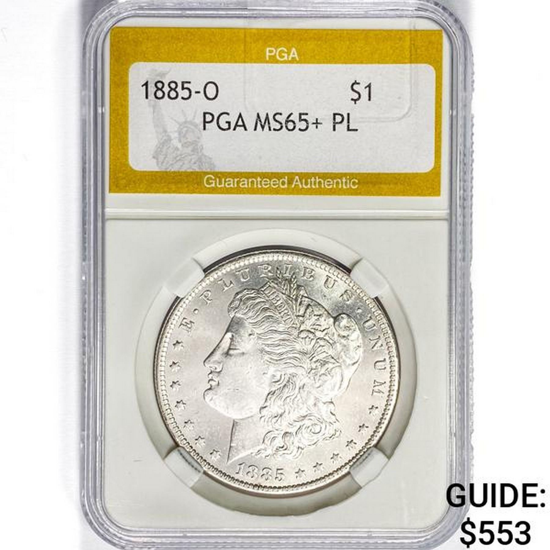 1885-O Morgan Silver Dollar PGA MS65+ PL