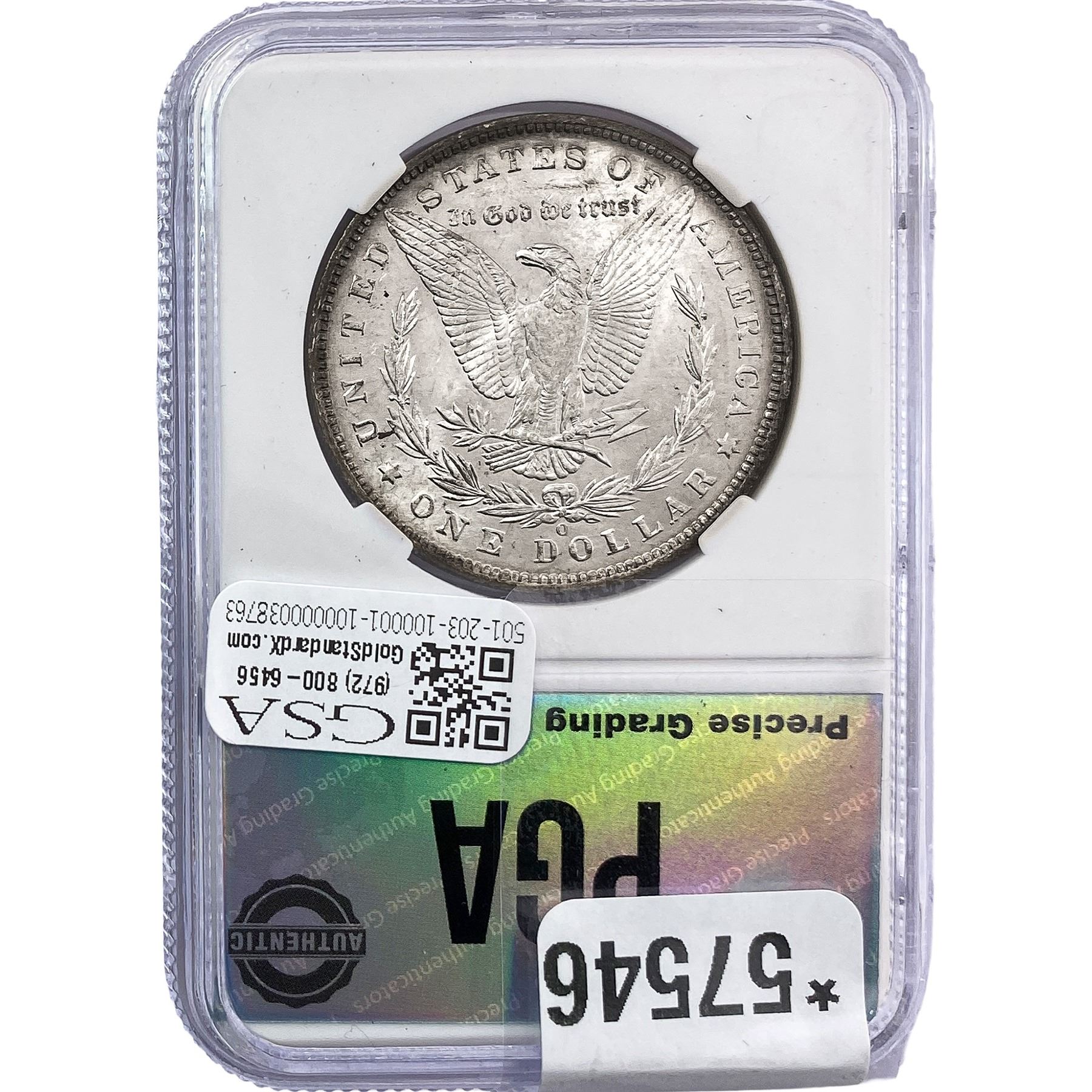 e. Coins sold referencing a third-party grading service are sold “AS IS” without any express or implied warranty, except for a guarantee by GSA that they are genuine. Removal or alteration of the holder, voids all of Bidder’s claims concerning that Product. Certain warranties may be available from the grading services and Bidders are referred to them for further details: Numismatic Guaranty Corporation (NGC), PO Box 4776, Sarasota, FL 34230, www.ngccoin.com/services/writtenguarantee.asp; Professional Coin Grading Services (PCGS), PO Box 9458, Newport Beach, CA 92658, www.pcgs.com/guarantee.html; ANACS, 6555 S. Kenton St., Ste. 303, Englewood, CO 80111; and Independent Coin Grading Co. (ICG), 7901 East Bellview, Ave., Suite 50, Englewood, CO 80111.