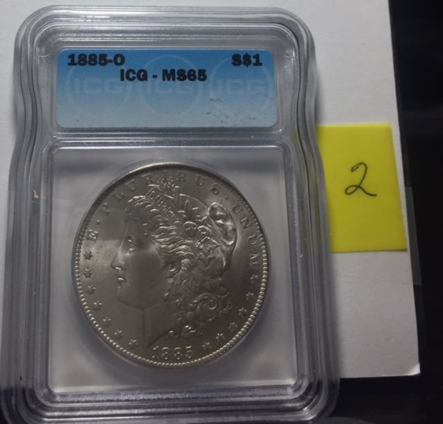 1885-O Morgan silver dollar in IGC Holder MS65