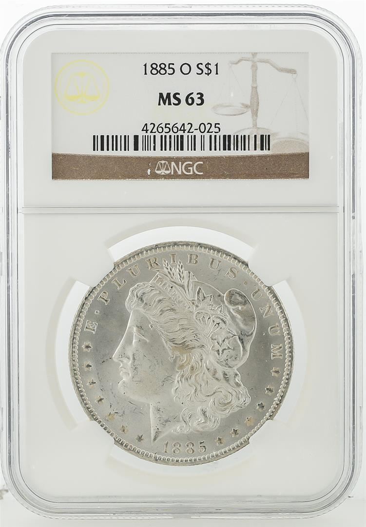 One 1885-O NGC MS63 Morgan Silver Dollar. NGC Certified.