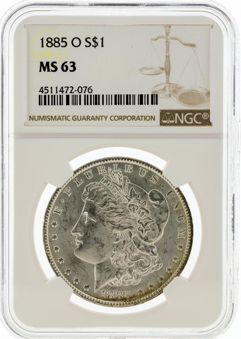 One 1885-O NGC MS63 Morgan Silver Dollar. NGC Certified.