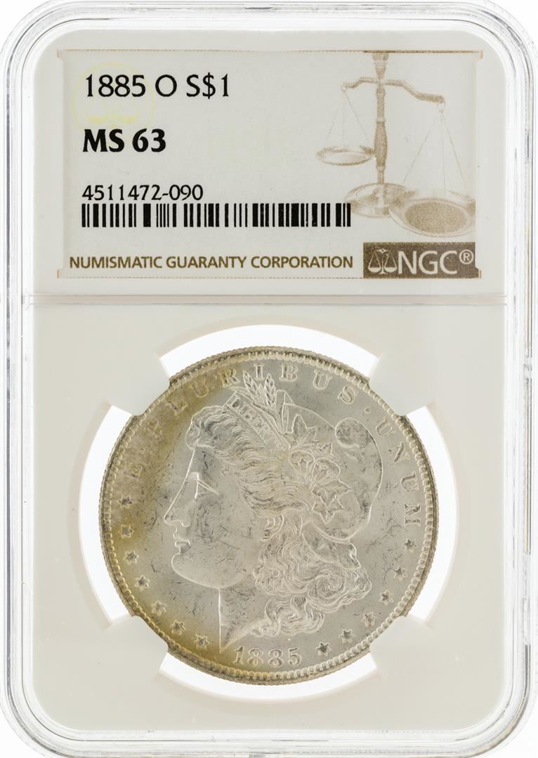 One 1885-O NGC MS63 Morgan Silver Dollar. NGC Certified.