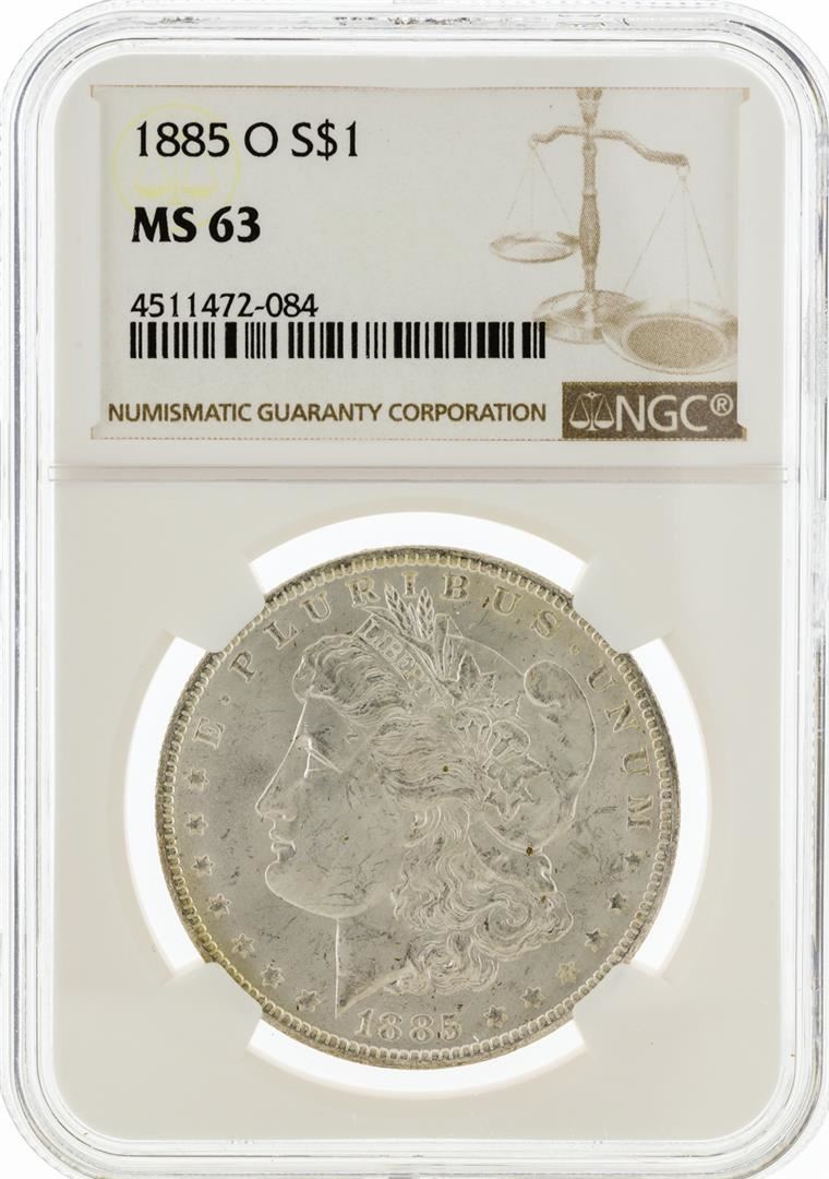 One 1885-O NGC MS63 Morgan Silver Dollar. NGC Certified.
