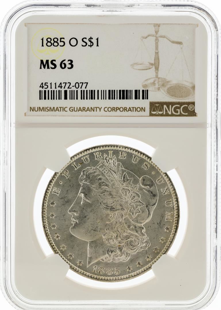 One 1885-O NGC MS63 Morgan Silver Dollar. NGC Certified.