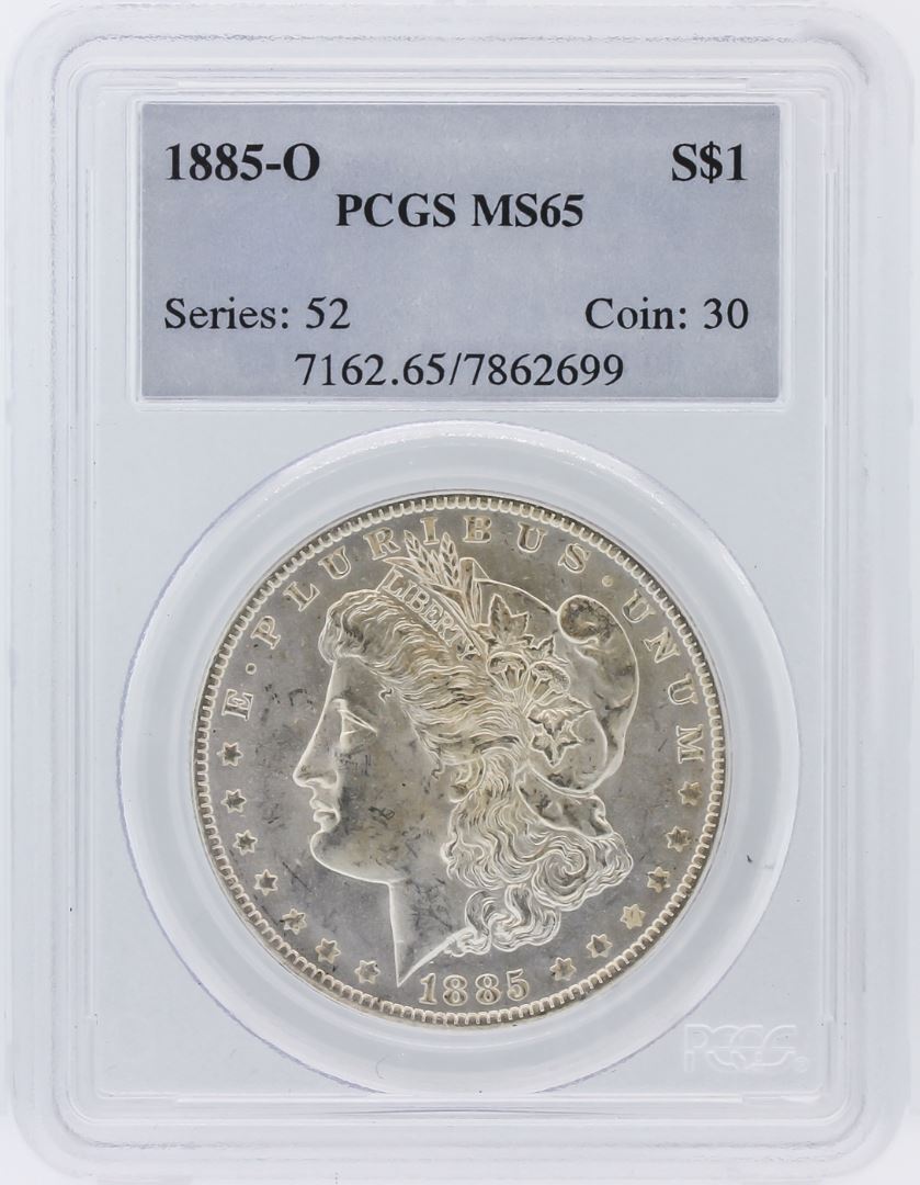 One 1885-O PCGS MS65 Morgan Silver Dollar. PCGS Certified.