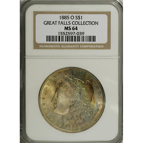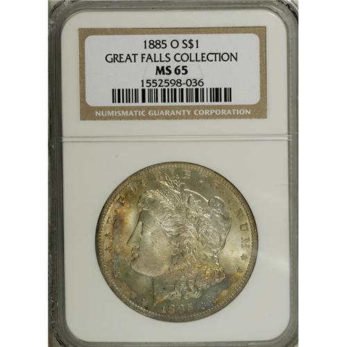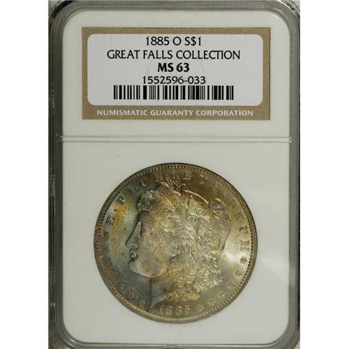 1885-O S$1 MS63 NGC, beautiful almond-gold and ice-blu
