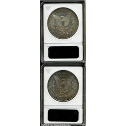 <B>1885-O<S$1> MS64 ANACS,</B></I> Aqua, gold-orange, and lavender toning adheres to the obverse borders, and is more extensive, as well as deeper in hue, on the reverse; and an <B>1885-O MS64 ANACS,</B></I> streaks of olive, sea-green, and aqua-blue toning on the obverse, while the reverse is orange and crimson in the center area framed by aqua-blue and sea-green coloration around the rims. 2 Coins <BR><BR><B>Important notice:</B> Heritage usually auctions material at the rate of 200-250 lots per hour. On some occasions eBay Live bid software or the Internet may not be able to keep up with the pace of the auction. We recommend placing a realistic absentee bid now as insurance to avoid disappointment. Occasionally the auctioneer may eliminate or reject an eBay Live bid, and the auctioneer may also reopen a lot after the close of the eBay live bidding (usually because we missed an audience bid), and may reject your bid even if it shows you as the winning bidder. By bidding via eBay Live, you agree that Heritage may award the lot to another bidder at its sole discretion under the circumstances described above or any other reasonable circumstances. Since eBay bids are not shown to us until we open the lot on the floor, we treat those bids just like floor bids. In most cases the floor responds before the eBay bid is presented to us, due to Internet lag time, so for consistency we have made it a policy that floor bids are always considered first over tie eBay live bids. Also please note that all Heritage lots purchased through eBay Live carry a 20% Buyer's Premium. Please make sure you read the Terms and Conditions before you bid. </span></font></tr></table></td></tr></table>