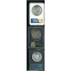 <B>1885-O<S$1> MS64 PCGS,</B></I> well struck and untoned, housed in a first generation PCGS holder; <B>1886 MS65 PCGS,</B></I> gray, burnt-orange, and powder-blue toning; and a <B>1902-O MS65 NGC,</B></I> a splash of rainbow coloration in the upper, right obverse. 3 coins <BR><BR><B>Important notice:</B> Heritage usually auctions material at the rate of 200-250 lots per hour. On some occasions eBay Live bid software or the Internet may not be able to keep up with the pace of the auction. We recommend placing a realistic absentee bid now as insurance to avoid disappointment. Occasionally the auctioneer may eliminate or reject an eBay Live bid, and the auctioneer may also reopen a lot after the close of the eBay live bidding (usually because we missed an audience bid), and may reject your bid even if it shows you as the winning bidder. By bidding via eBay Live, you agree that Heritage may award the lot to another bidder at its sole discretion under the circumstances described above or any other reasonable circumstances. Since eBay bids are not shown to us until we open the lot on the floor, we treat those bids just like floor bids. In most cases the floor responds before the eBay bid is presented to us, due to Internet lag time, so for consistency we have made it a policy that floor bids are always considered first over tie eBay live bids. Also please note that all Heritage lots purchased through eBay Live carry a 20% Buyer's Premium. Please make sure you read the Terms and Conditions before you bid.
