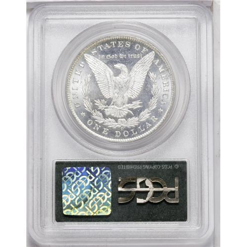 <B>1885-O<img border='0' src='http://www.heritagecoins.com/images/star.gif' width=10 height=10>$1> MS66 Deep Mirror Prooflike PCGS.</B></I> Light lemon toning adorns the borders of this prominently mirrored Premium Gem. Crisply struck and beautiful. The cheek and neck have only trivial contact. Certified in a green label holder.