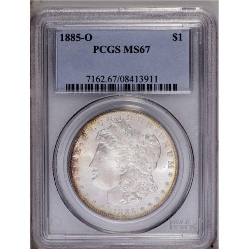 "1885-O S$1 MS67 PCGS. Creamy, virtually"