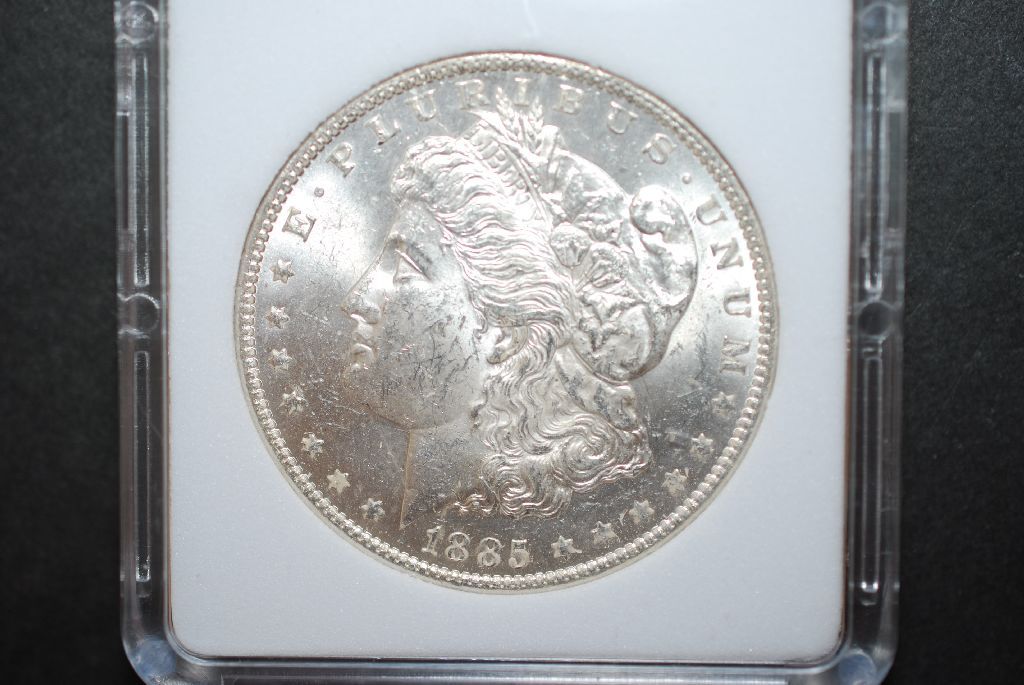 1885-O US Silver Morgan $1; MCPCG Graded MS62; EST. $45-65