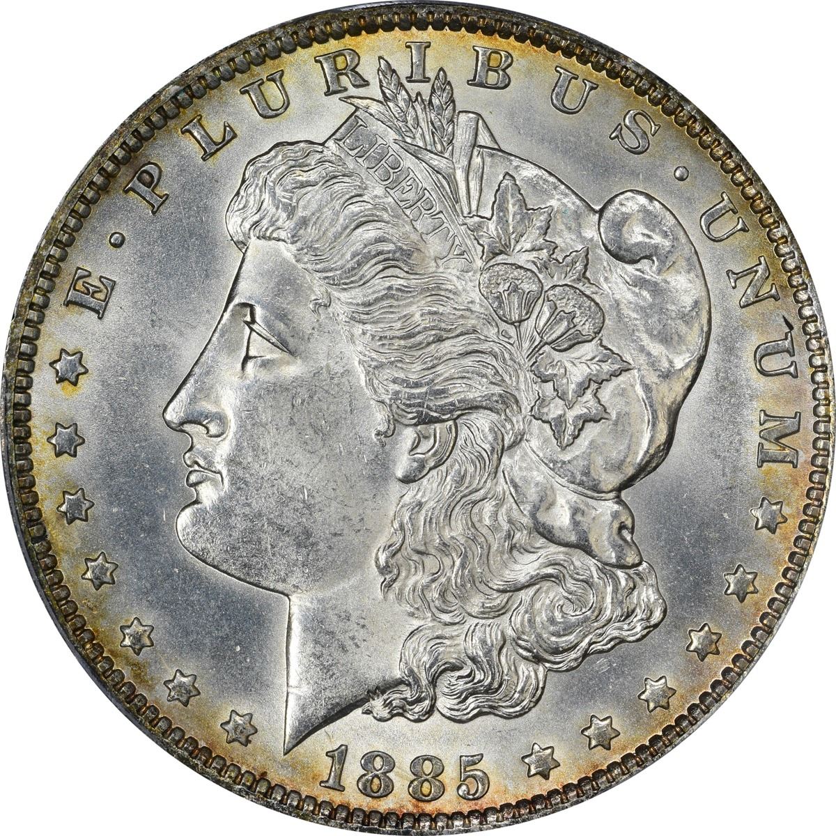 Lightly cleaned or thumbed at some point, but to no great visual detriment. Largely brilliant with lively cartwheel activity, and with warm golden toning now gathering at the rims. PCGS #7162