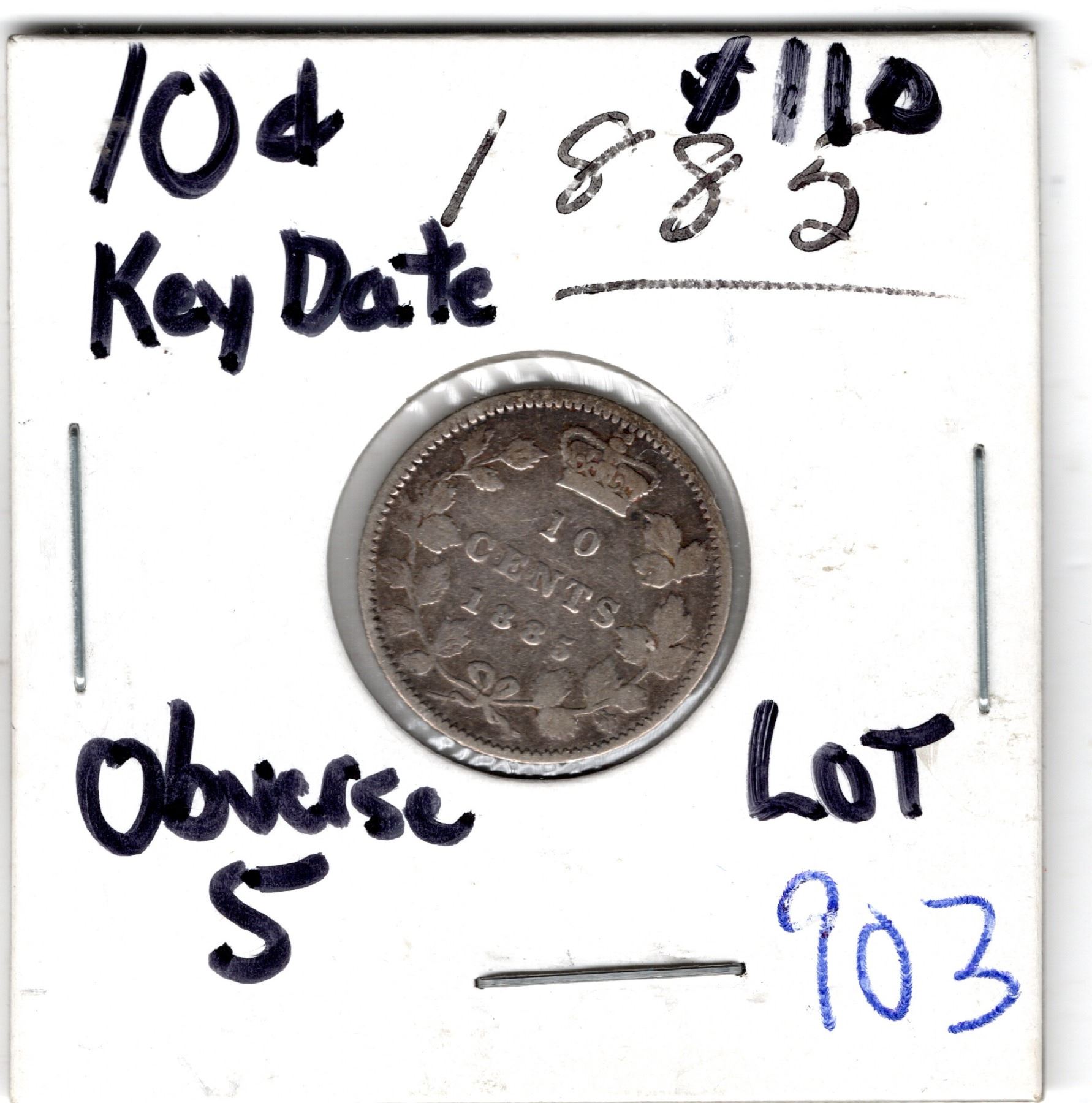 1885 OBVERSE 5 TEN CENT KEY DATE