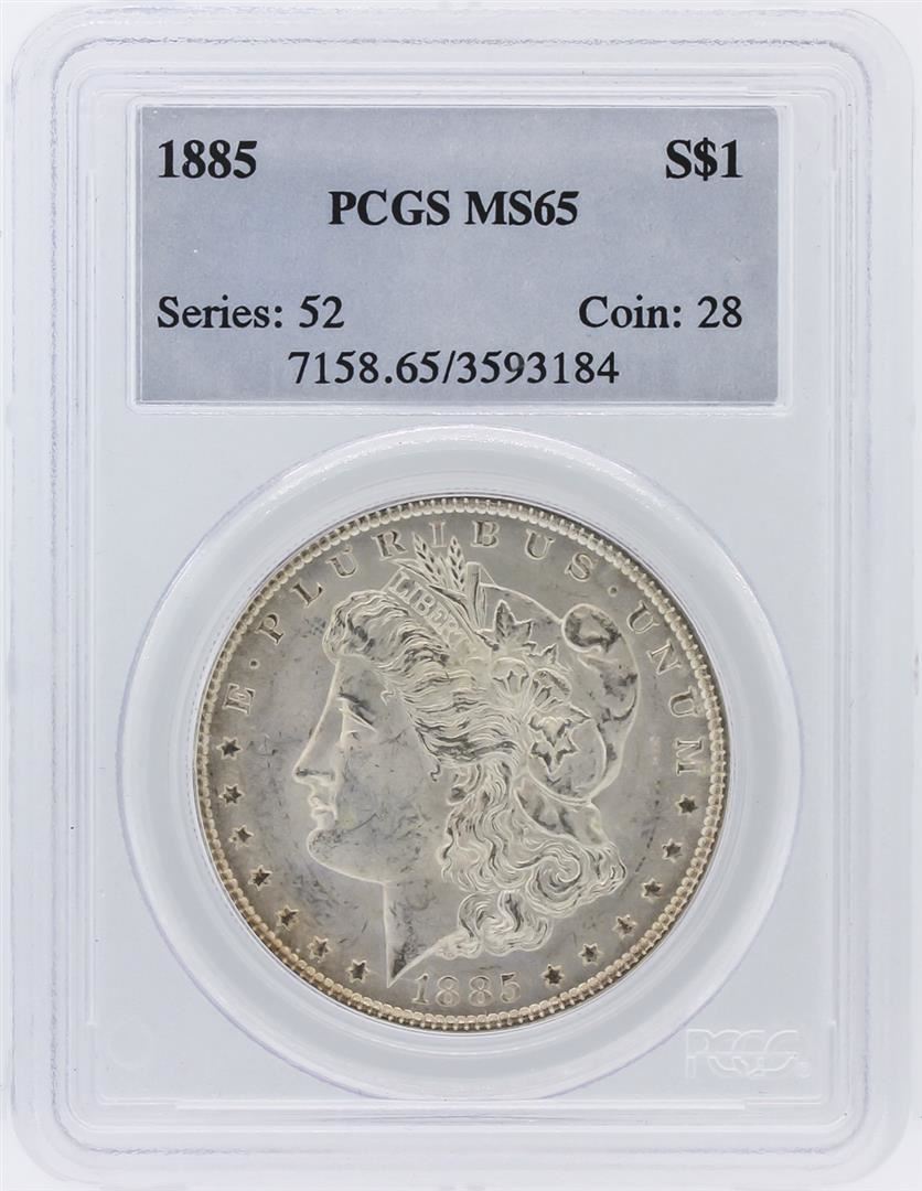 One 1885 PCGS MS65 Morgan Silver Dollar. PCGS Certified.