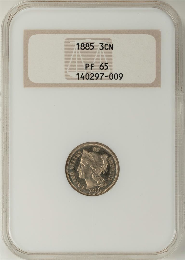One 1885 Proof Three Cent Nickel Coin NGC PR65. NGC Certified.