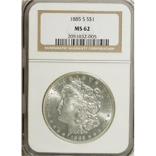 1885-S $1 MS62 NGC. NGC Census: (574/2514). PCGS P