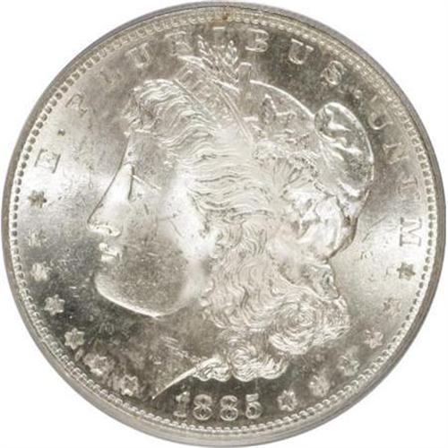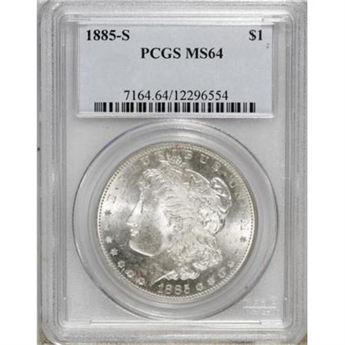 <B>1885-S $1 MS64 PCGS.</B></I> . PCGS Population (1849/410). NGC Census: (1197/201). Mintage: 1,497,000. Numismedia Wsl. Price for NGC/PCGS coin in MS64: $590. (#7164)<BR><BR><B>Coin Engraver:</B> George T. Morgan<BR><BR><b>Shipping:</b> Coins & Currency (<a target="_blank" href="http://www.heritageauctions.com/common/shipping.php">view shipping information</a>)