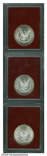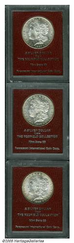 <B>1885<S$1> MS65 Paramount International (MS64),</B></I> Ex: Redfield, a lustrous and attractively struck example with peripheral golden-brown toning; <B>1887-S MS65 Paramount International (MS63),</B></I> Ex: Redfield, honey-gold color about the reverse border, crisply struck and lustrous but a bagmark on the cheek; and an <B>1898-S MS65 Paramount International (MS63),</B></I> Ex: Redfield, frosty and pleasing, light tan patina across the margins, the mintmark is nicely repunched south.