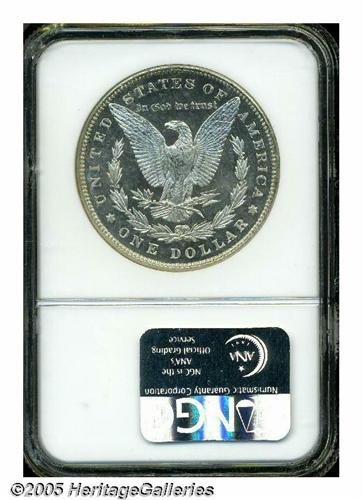 <B>1885<S$1> MS66 Deep Mirror Prooflike NGC.</B></I> Well struck with deep, watery reflectivity in the jet-black fields, and nicely frosted devices on each side of the coin. Other than a couple of minor marks on the eagle's breast, the piece seems exquisitely preserved. Population: 49 in 66 Deep Mirror Prooflike, 5 finer (5/05).