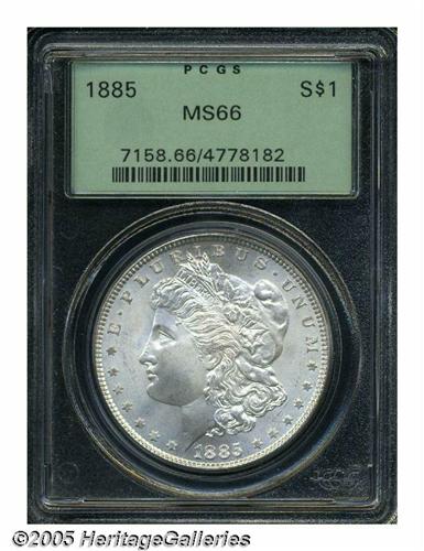 1885 S$1 MS66 PCGS. Completely untoned, with plea