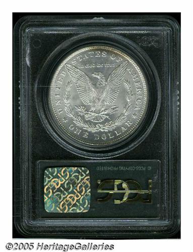 <B>1885<S$1> MS66 PCGS.</B></I> The luster is satiny and the strike bold on this virtually untoned Gem which displays only a bit of reddish-golden color at the upper reverse edge.