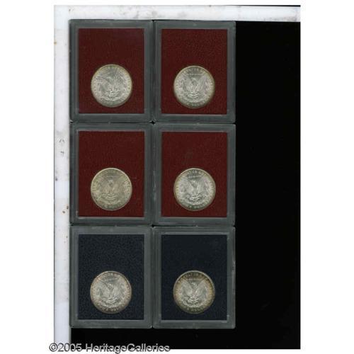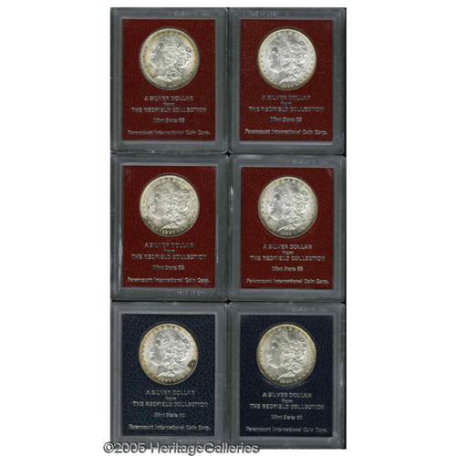 <B>1885<S$1> Morgan Dollar MS60 Paramount International (MS61),</B></I> Ex: Redfield, rose and golden-brown toning embraces the borders; <B>1889 Morgan Dollar MS65 Paramount International (MS62),</B></I> Ex: Redfield, lightly toned, nicely struck and attractive; <B>1896 Morgan Dollar MS65 Paramount International (MS63),</B></I> Ex: Redfield, not far from brilliant although peripheral gold color exists; <B>1897 Morgan Dollar MS60 Paramount International (MS60 Environmental Damage),</B></I> Ex: Redfield, a small area of charcoal corrosion at 3 o'clock; <B>1897 Morgan Dollar MS65 Paramount International (MS63),</B></I> Ex: Redfield, lovely honey-brown colors enrich the borders; <B>1897 Morgan Dollar MS65 Paramount International (MS60),</B></I> Ex: Redfield, splashes of chestnut and apple-green toning.