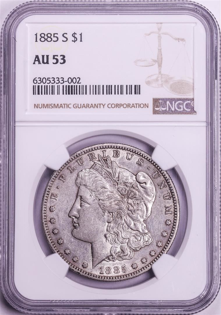 One 1885-S $1 Morgan Silver Dollar Coin NGC AU53. NGC Certified.