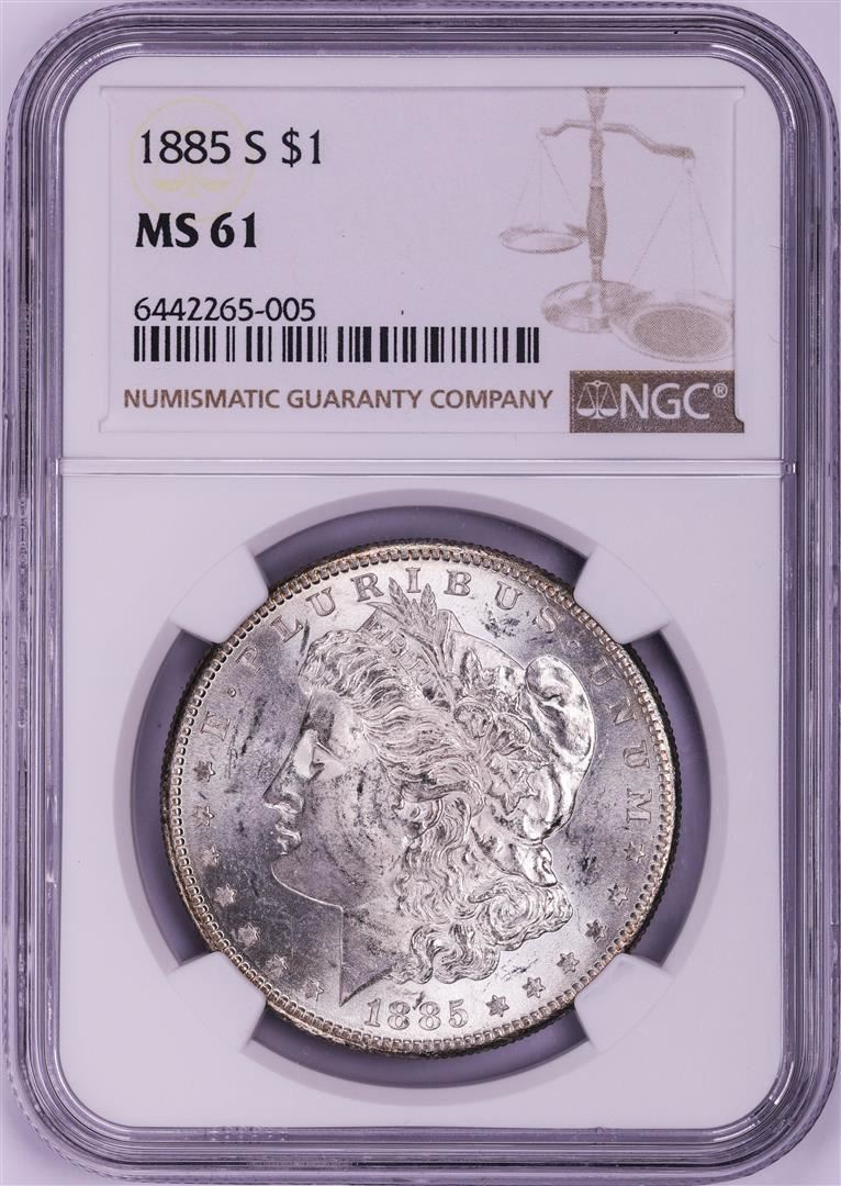 One 1885-S $1 Morgan Silver Dollar Coin NGC MS61. NGC Certified.