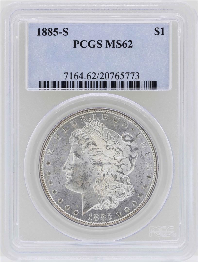One 1885-S $1 Morgan Silver Dollar Coin PCGS MS62. PCGS Graded.