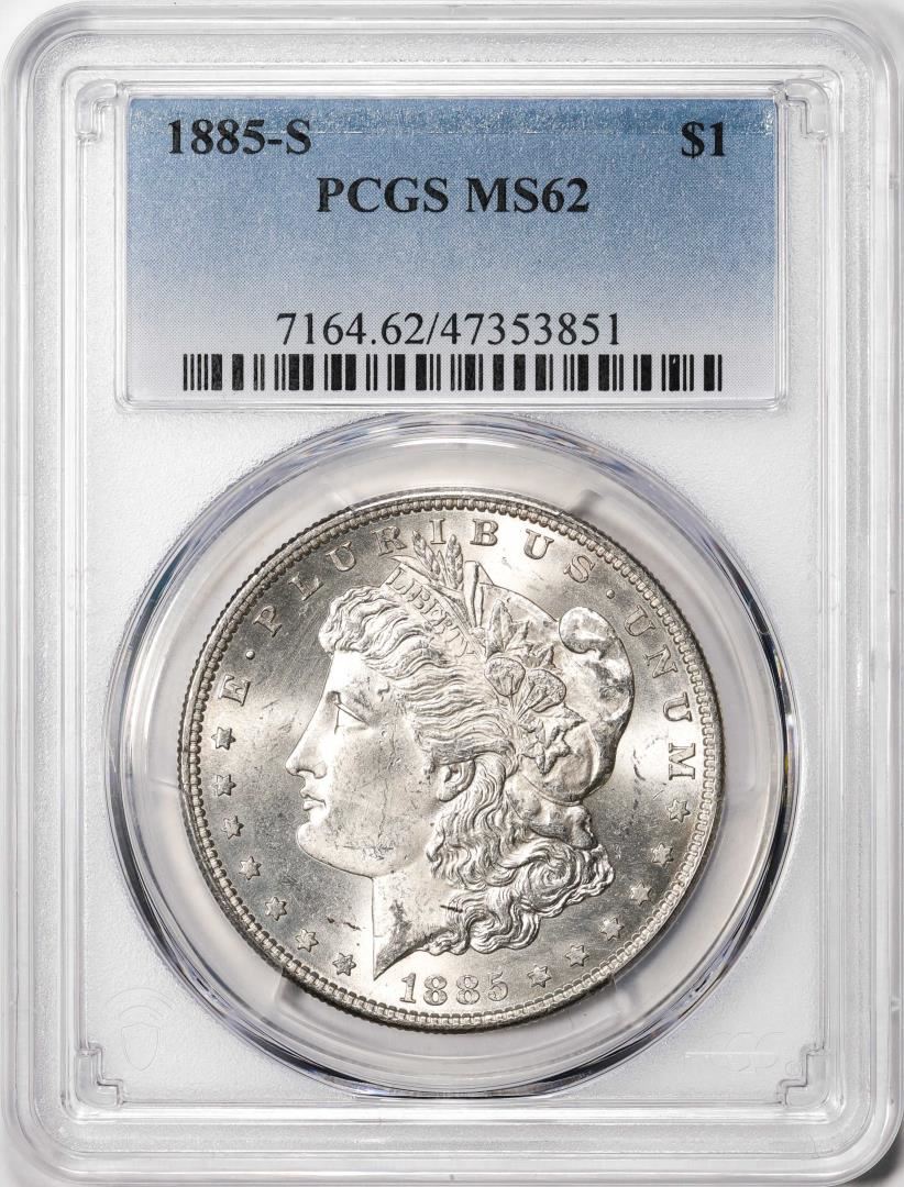 One 1885-S $1 Morgan Silver Dollar Coin PCGS MS62. PCGS Graded.
