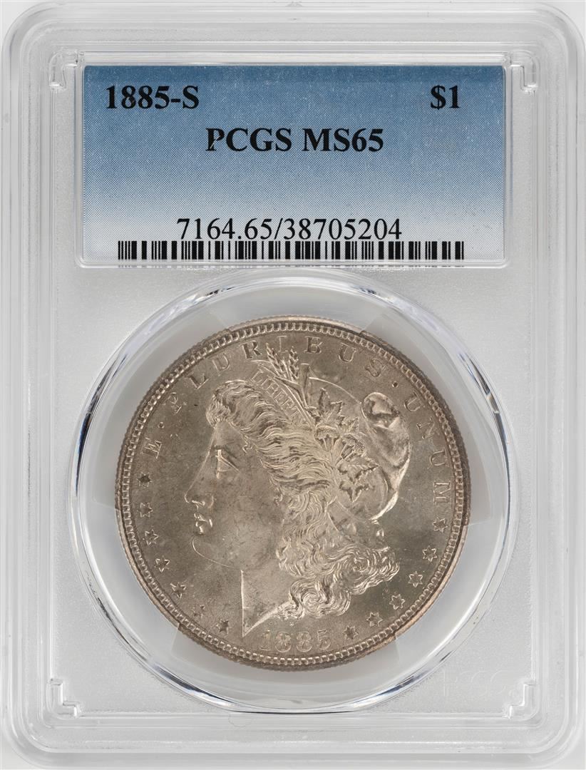 One 1885-S $1 Morgan Silver Dollar Coin PCGS MS65. PCGS Graded.