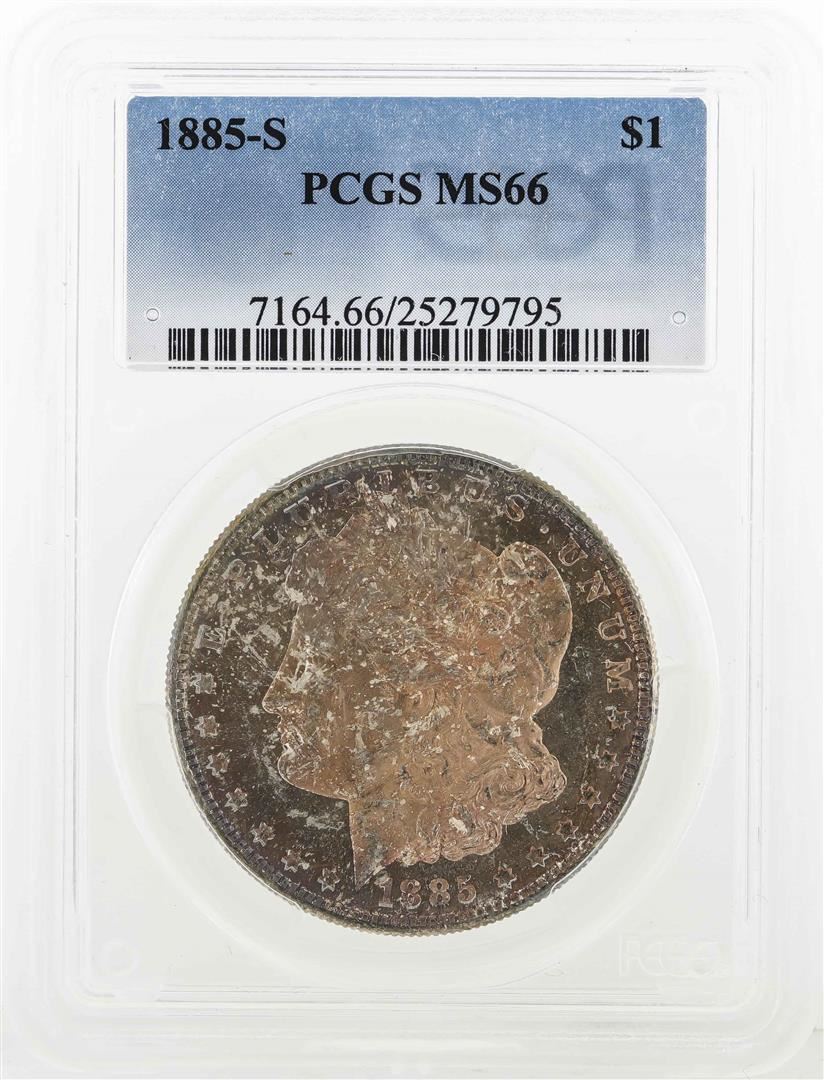 One 1885-S $1 Morgan Silver Dollar Coin PCGS MS66. PCGS Graded.