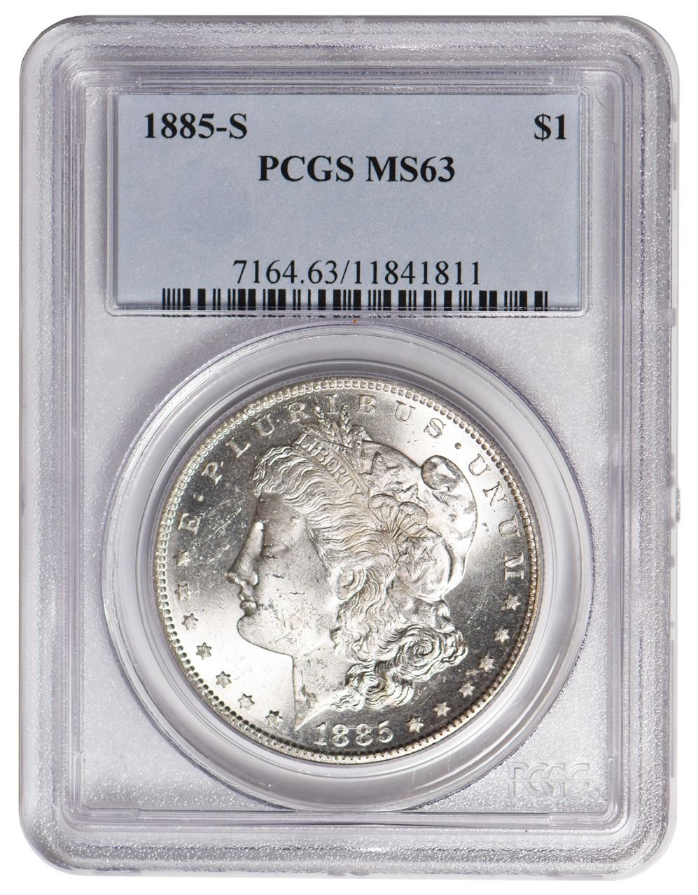 One 1885-S $1 Morgan Silver Dollar PCGS MS63.