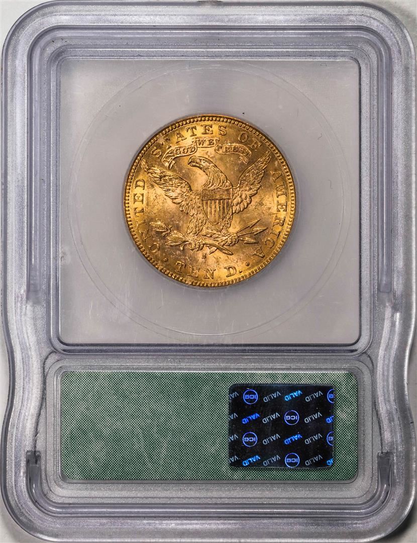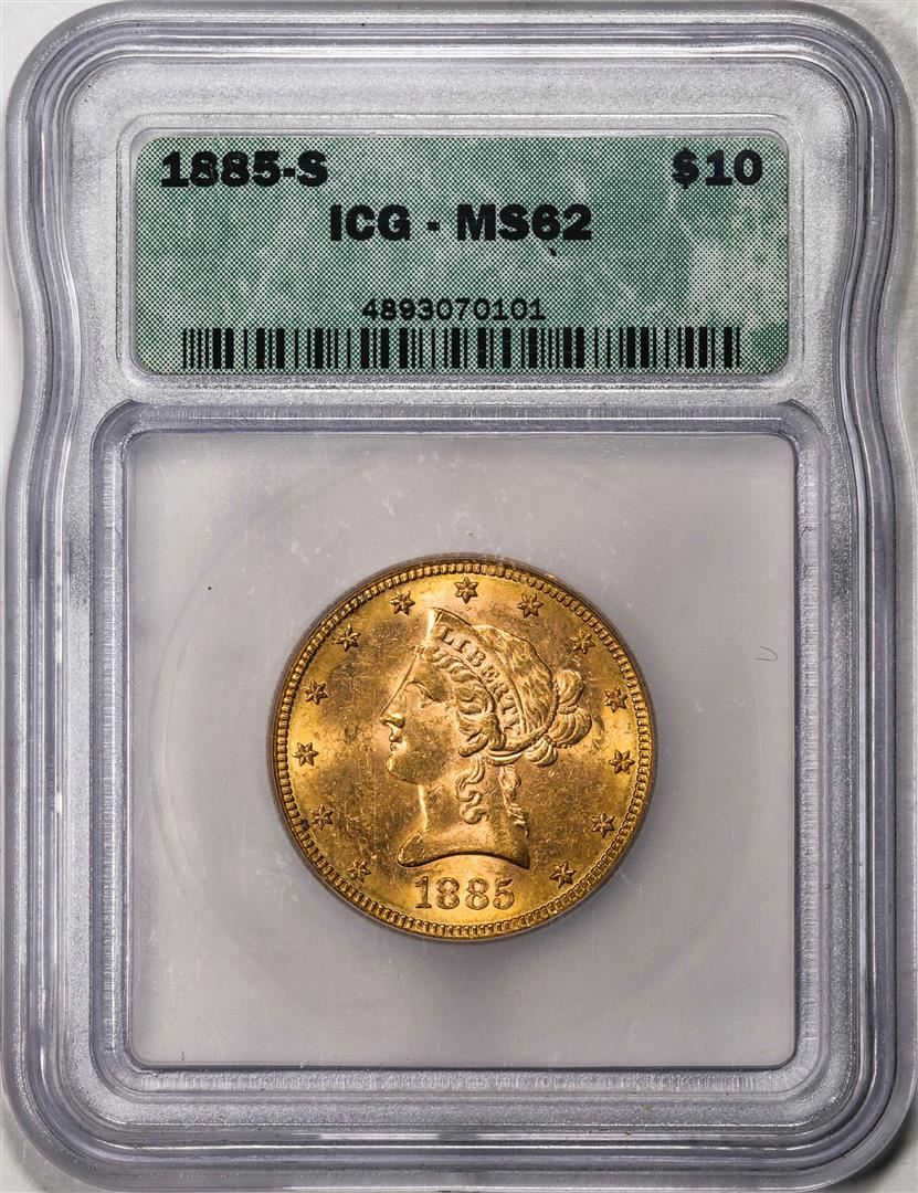 One 1885-S $10 Liberty Head Eagle Gold Coin ICG MS62. ICG Certified.