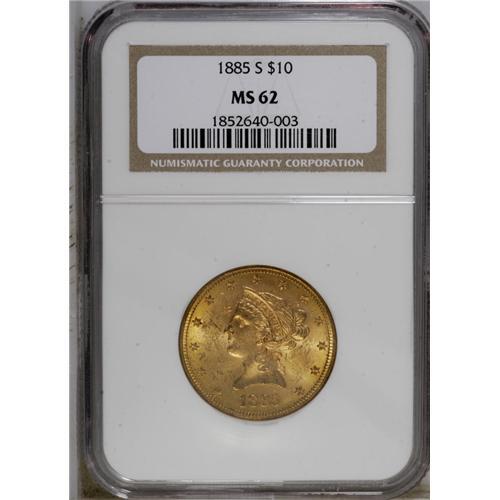 1885-S $10 MS62 NGC. Highly lustrous with well-defined