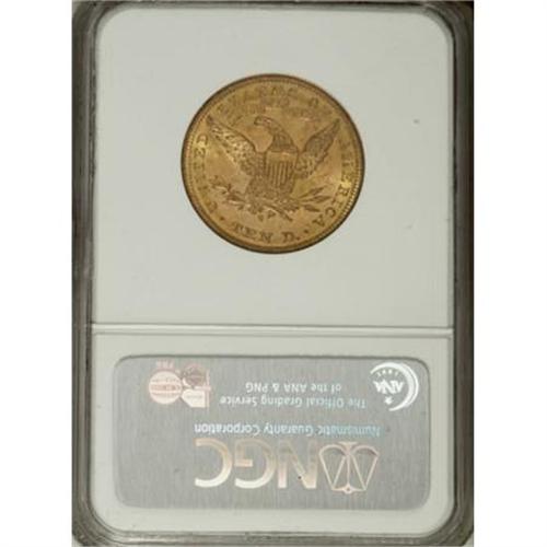 <B>1885-S $10 MS62 NGC.</B></I> A charming orange-gold representative of this better date ten. Boldly struck, original, and lustrous. Kept from a higher grade only by a shallow mark on the field near the nose.<BR><BR><B>Coin Engraver:</B> Christian Gobrecht<BR><BR><b>Shipping:</b> Coins & Currency (<a target="_blank" href="http://www.heritageauctions.com/common/shipping.php">view shipping information</a>)