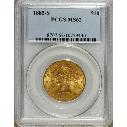 1885-S $10 MS62 PCGS. A sharply struck and fully lustr