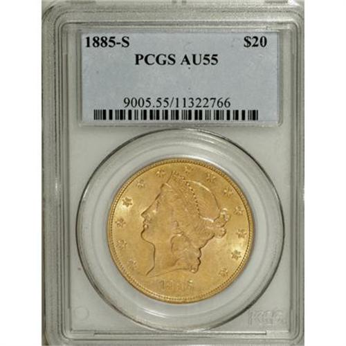 1885-S $20 AU55 PCGS. PCGS Population (48/1479). N