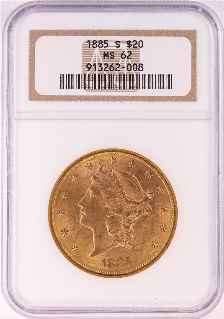 One 1885-S $20 Liberty Head Double Eagle Gold Coin NGC MS62. NGC Certified.