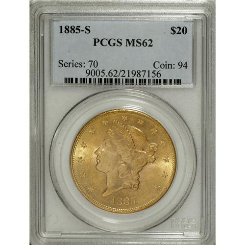 1885-S $20 MS62 PCGS. Exceedingly frosty luster radiat