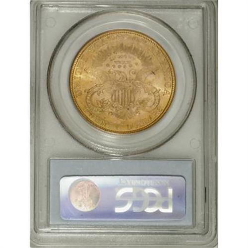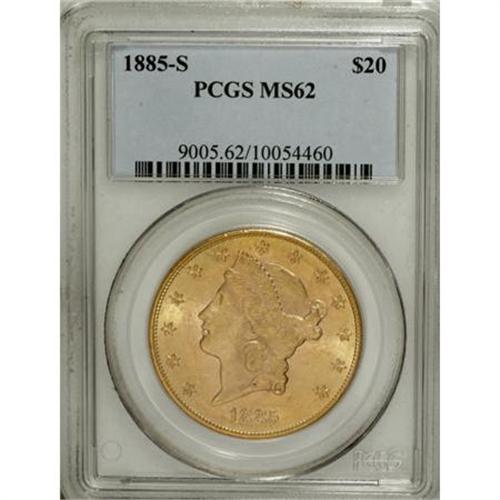 <B>1885-S $20 MS62 PCGS.</B></I> Rich orange-gold patina displays wisps of mint-green at the peripheries. Lustrous surfaces reveal some minute grade-limiting contact marks.<BR><BR><B>Coin Engraver:</B> James B. Longacre<BR><BR><b>Shipping:</b> Coins & Currency (<a target="_blank" href="http://www.heritageauctions.com/common/shipping.php">view shipping information</a>)